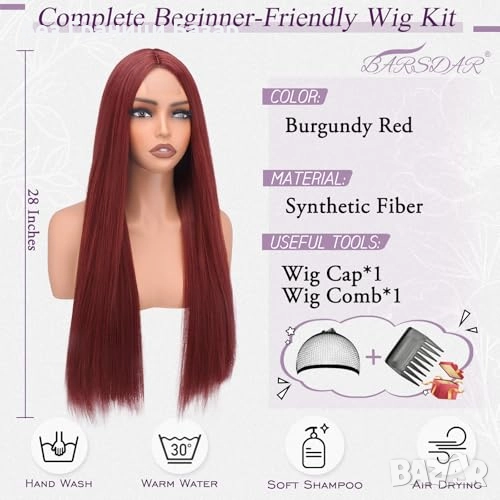 Нова Дълга права бордо перука 71 см топлоустойчива коса за жени прическа