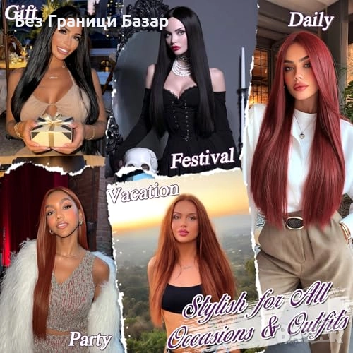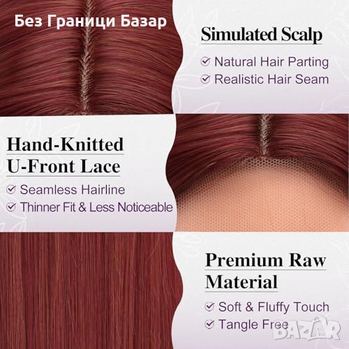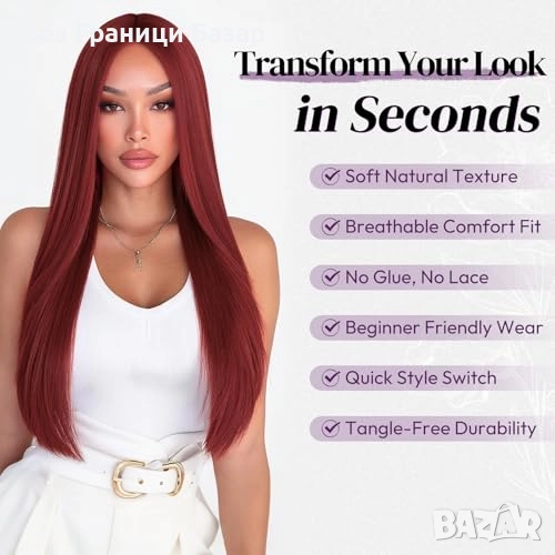 Дълга перука 71 см с естествен бордо цвят и права структура