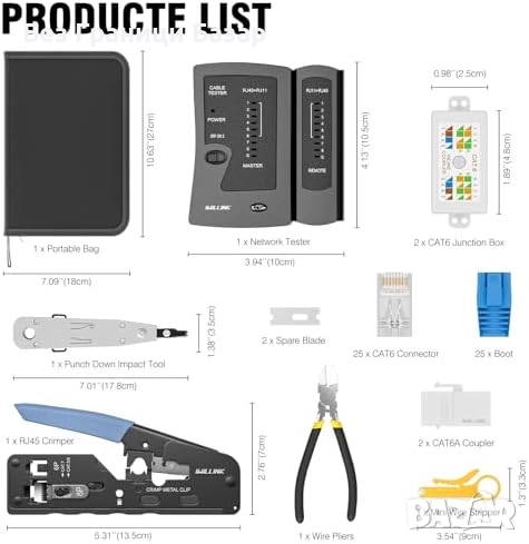 Нов Комплект RJ45 кримпер с тестер, Cat6/Cat6a конектори и куплери