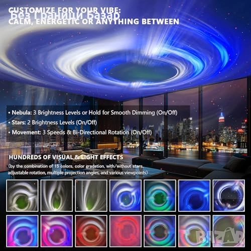 Създава спокойна атмосфера за сън, релакс или ефектно парти