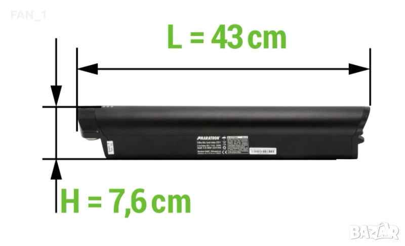Полутуберна батерия Maratron ZZ374 - 36V 11.6Ah (418Wh) - за Telefunken Aufsteiger M922, M923, M925, M935, Zündapp Z810 - REENTION EEL-MINI 40.