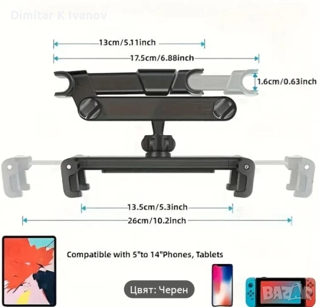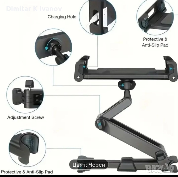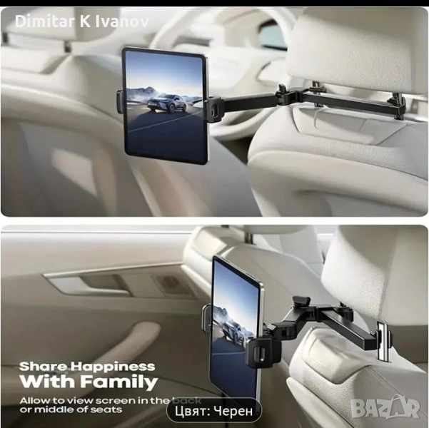 Автомобилна стойка за таблет и телефон, регулируема на 360°