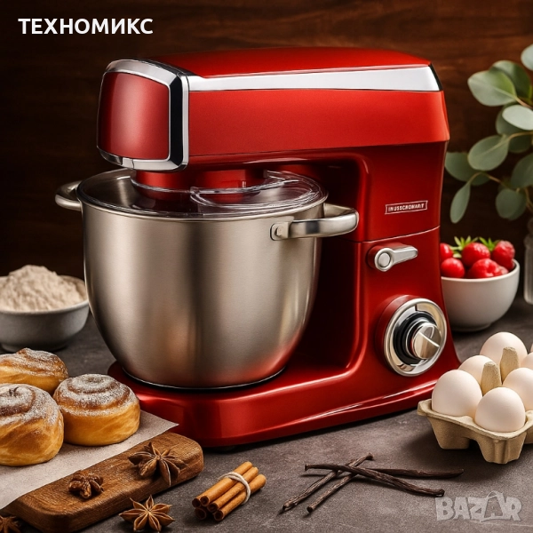 Уморен ли си от ръчното месене, бавното бъркане и вечно разплисканата кухня? Този многофункционален кухненски робот решава всички тези проблеми – бие, меси и смесва тежки теста за секунди, без усилие от твоя страна. С мощност от 2100W и купа от неръждаема стомана 7.5 литра, той поема работата вместо теб и ти спестява часове. Това е уредът, който ти гарантира бързи, равномерни и професионални резултати у дома – така приготвяш повече храна за по-малко време и с нулево напрежение.