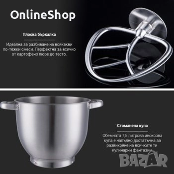Уморен ли си от ръчното месене, бавното бъркане и вечно разплисканата кухня? Този многофункционален кухненски робот решава всички тези проблеми – бие, меси и смесва тежки теста за секунди, без усилие от твоя страна. С мощност от 2100W и купа от неръждаема стомана 7.5 литра, той поема работата вместо теб и ти спестява часове. Това е уредът, който ти гарантира бързи, равномерни и професионални резултати у дома – така приготвяш повече храна за по-малко време и с нулево напрежение.