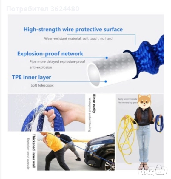 Разтегателен маркуч до 7. 5м с пистолет за пръскане.