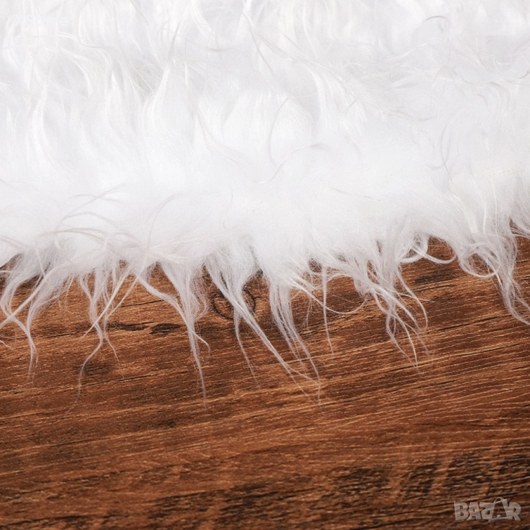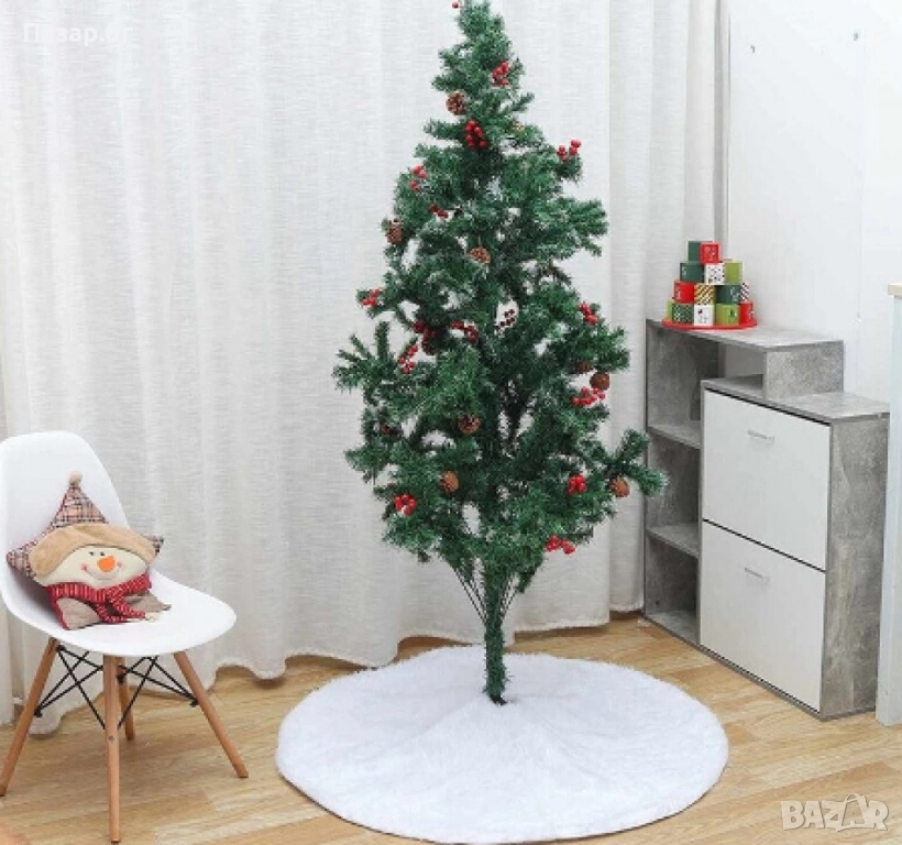 Бяла кръгла плюшена подложка за коледно дърво,елегантна украса за празничния декор. → Обява 52262877