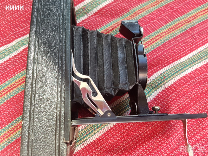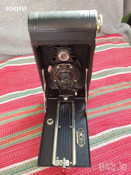 Произведен в Америка до 1910 година,в запазено и работещо състояние, като нов. Голям фотоапарат, обектива му се движи по релси. В затворено положение е 20 / 8,5 см.