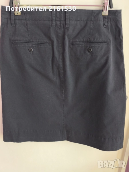 Дамска тъмно синя пола Marc O'polo, силует - трапецовиден, талия - 88 см, ханш - 104 см, дължина - 56 см, най-широка част долу - 118 см