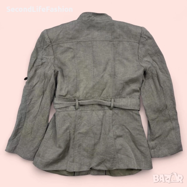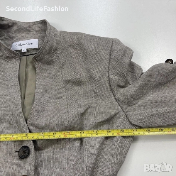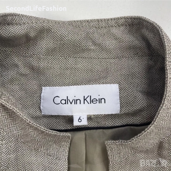 Дамско сако Calvin Klein блейзър ленен сив с колан и дълъг ръкав → Обява 52263107