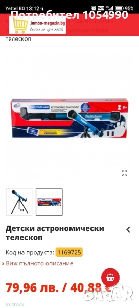 Здравейте предлагам чисто нов телескоп. Подробно описание в снимките на обявата. С кутия. Моля разгледайте и останалите ми предложения. Благодаря!!!