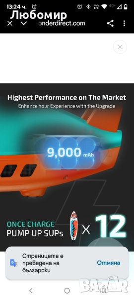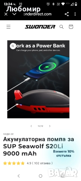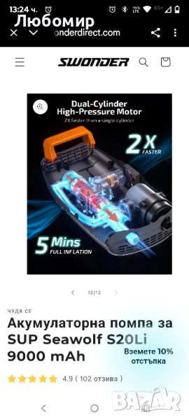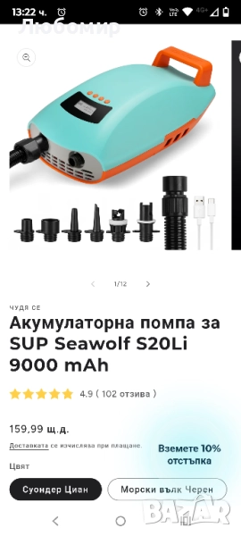 Акумулаторна помпа за SUP Seawolf S20Li 9000 mAh