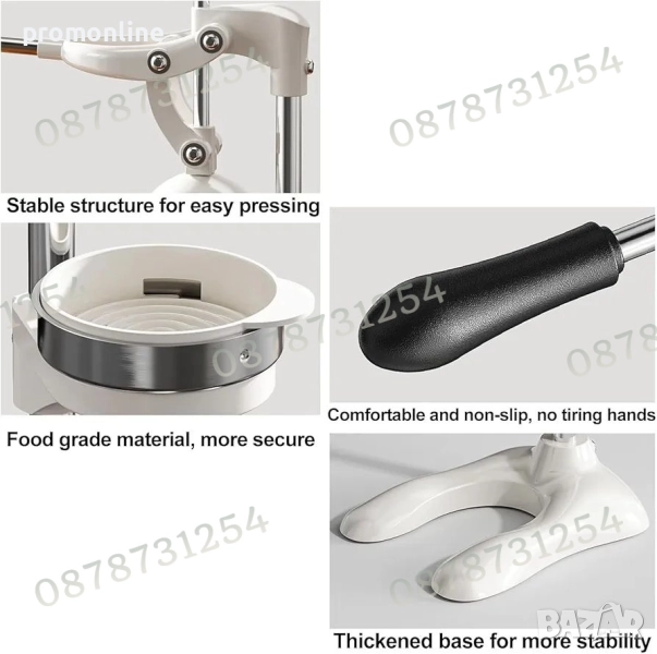 Професионална ръчна сокоизстисквачка за цитруси от търговски клас, изработена от здрав чугун за непрекъснато изцеждане. Надеждният лост ви помага да изстискате повече сок с по-малко усилия. Пресата за грейпфрут, портокал и лайм не се износва лесно. Широката основа ви позволява да изстисквате сока стабилно и да получавате максимално количество сок от плода.
