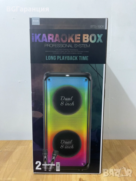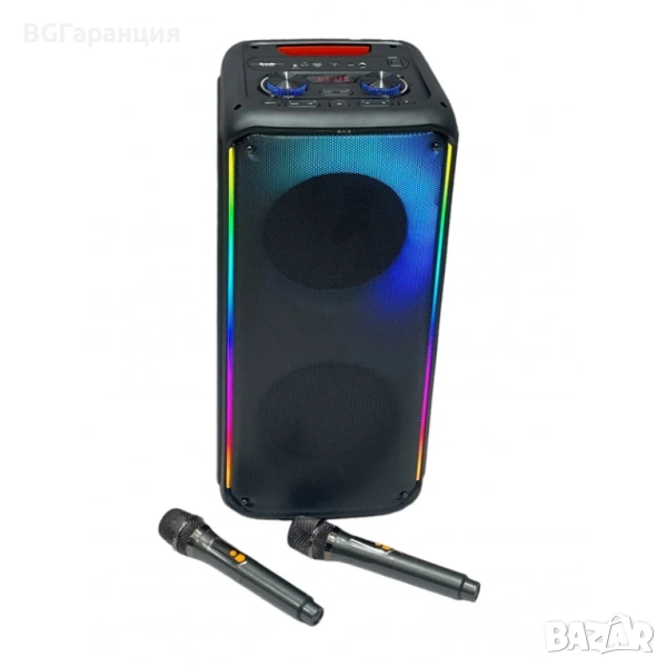 Професионална караоке системата е с два мощни 8-инчови говорителя е идеалният избор за любителите на силния и чист звук, съчетан с динамично LED осветление. Този модел съчетава ефективност, стил и лесна преносимост, което го прави подходящ както за домашна употреба, така и за събития на открито, рождени дни, семейни събирания или други тържества.
