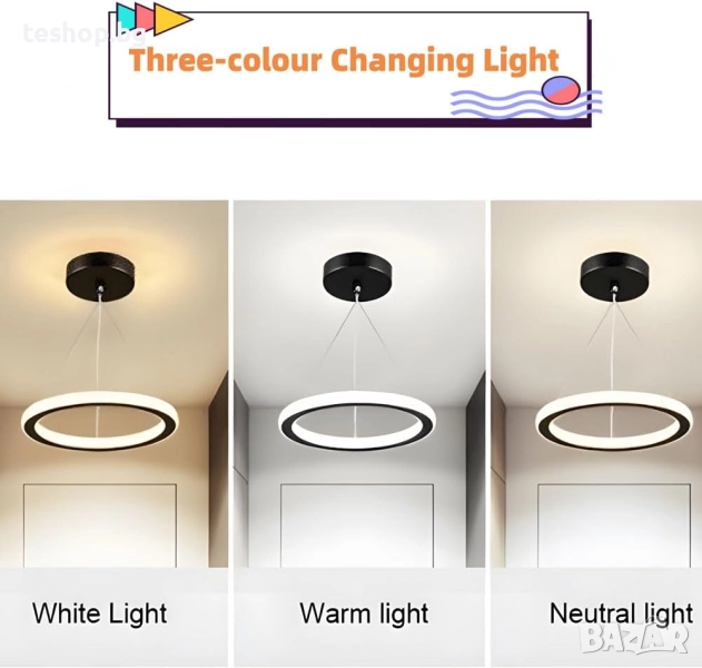 ТРИЦВЕТНО ДИМУВАНЕ - Можете също така да регулирате модерните LED полилеи в три различни цветови температури, като например: топла бяла светлина, неутрална бяла светлина и студена бяла светлина. Различните цветови температури могат да отговорят на вашите различни нужди. ТОЗИ ОЗАРЯВАЩ ОСВЕТИТЕЛ заема централно място и подобрява атмосферата на всяка стая с елегантен щрих. Подсилете атмосферата на всяко стълбище, трапезария, спалня, офис или хол с модерен щрих.