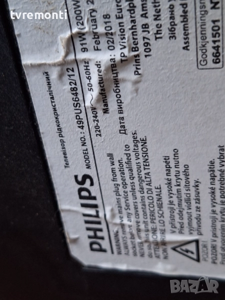 POWER BOARD, 715G8672-P02-000-002H,за 49-инчов телевизор PHILIPS Модел 49PUS6482/12 , с дисплей TPT4 → Обява 52263528