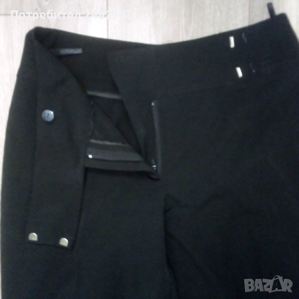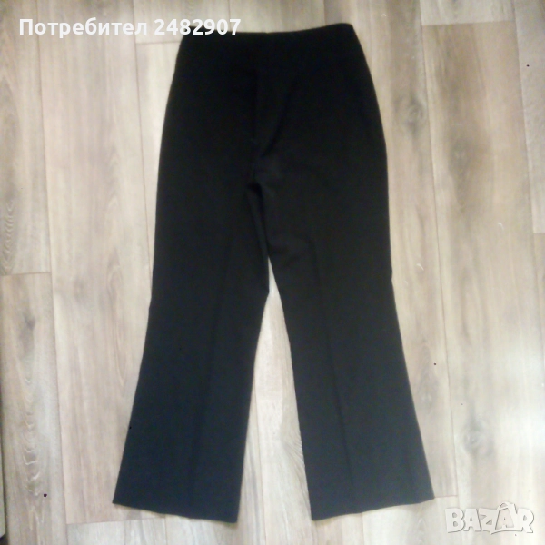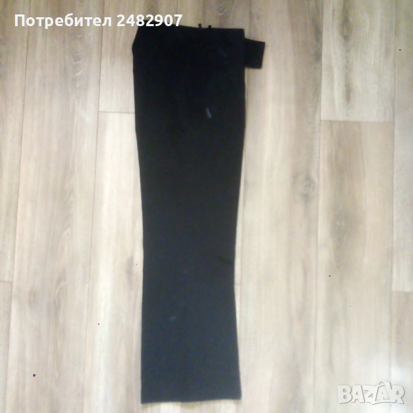 Черен дамски панталон Н&М, размер 38. Съдържа 93 % полиестер и 7 % еластан. Ширина в талията - 36 см, дължина от талията до чатала - 25 см, дължина от талията до долу - 95,5 см, ширина на крачола в долната част - 25 см. Много запазен, почти не е използван.