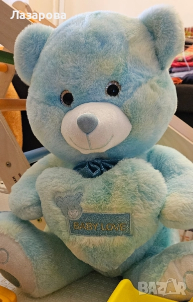 Синьо плюшено мече със сърце - 30 лв