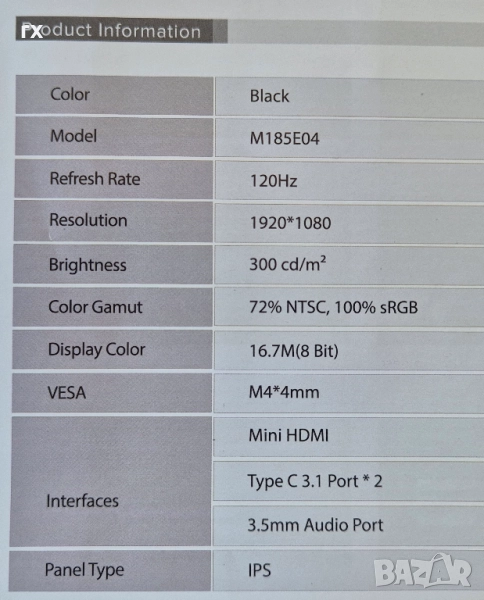 Преносим монитор EVICIV M185E04, 18,5 инча, IPS, 120Hz, 100%sRGB