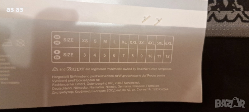 3 броя - комплект от нови мъжки боксерки на Kappa в размер XL. Цветът на боксерките е черен. 95% памук и 5% еластан
