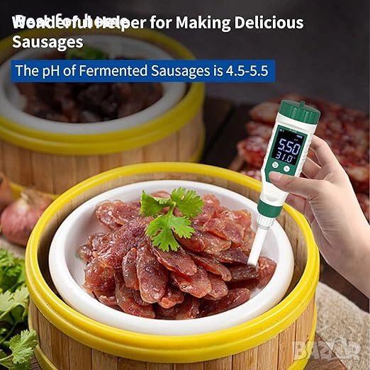 Включени компоненти 1* pH метър за храни; 5* прах за калибриране на pH; 1* ръководство за потребителя