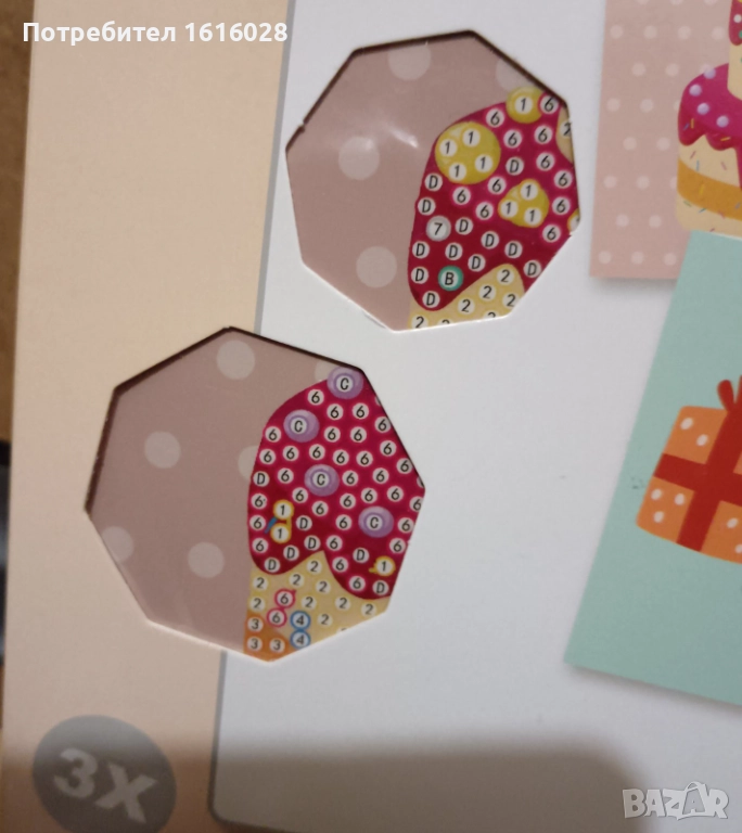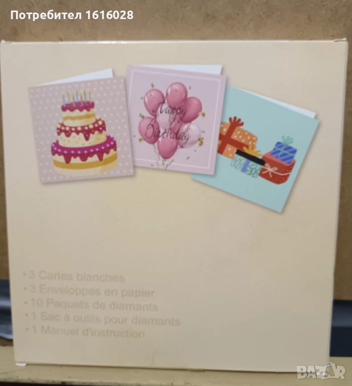 Подходящ подарък за рожден ден и без повод за начинаещи деца,които за първи път подреждат диамантени гоблени.Отвътре картичките са бели с много място за прекрасни послания.