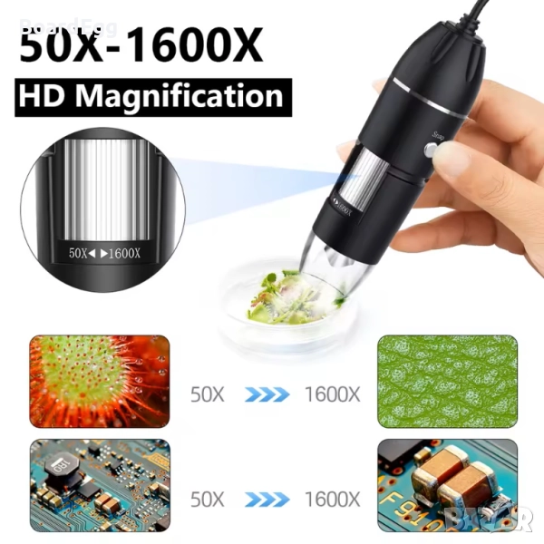🔎 Увеличение: до 1600X за ясна и детайлна визуализация