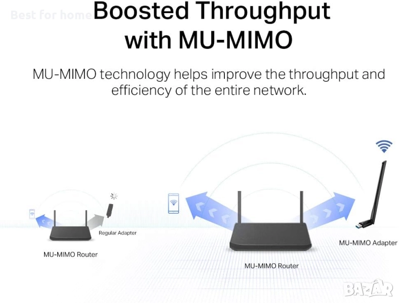 MU-MIMO технология — Подобрява пропускателната способност и ефективността на цялата мрежа с MU-MIMO технологията