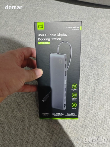 Докинг станция Minthouz, 12 в 1 USB C, VGA+HDMI+DP, 4*USB-A