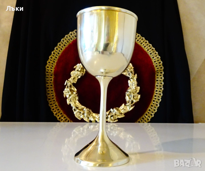 Старинен бронзов бокал,чаша за вино,шампанско,повдигната на