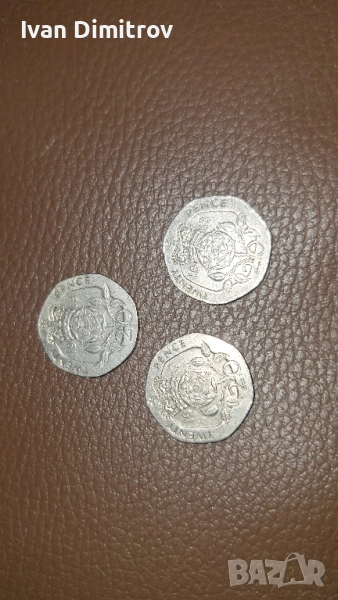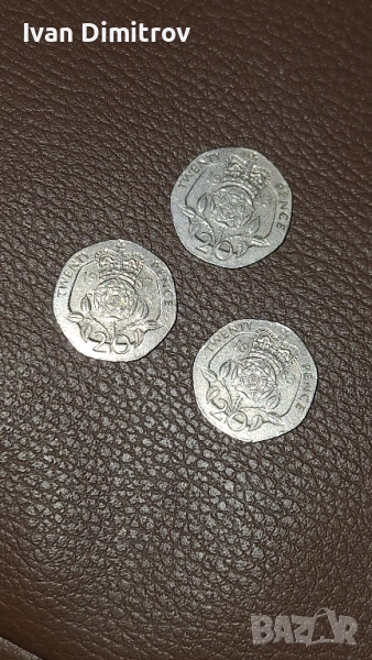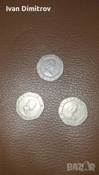 ЕДНАТА МОНЕТА Е 20 pence;ot 1987godina.Drugite 2 moneti ca pak na Elizabet2, ot 1983 godina. Blagodarq vi koito ima interes да се обади ,или пише