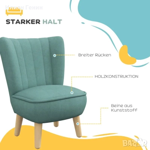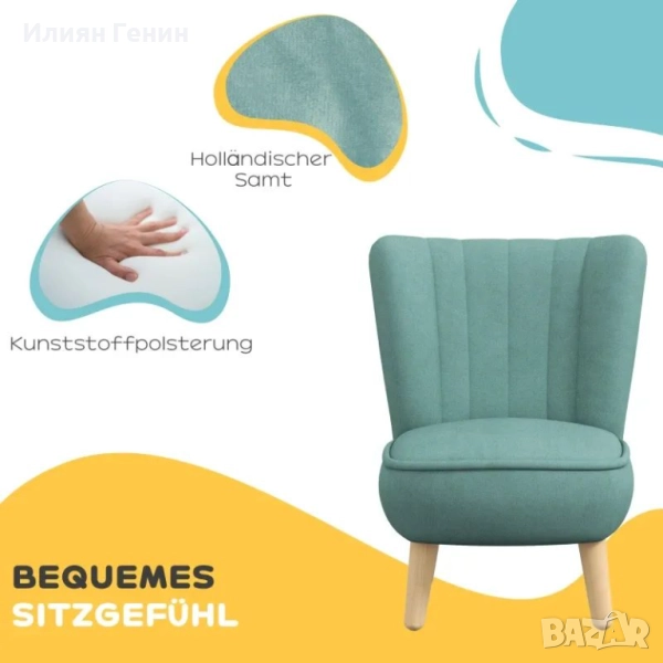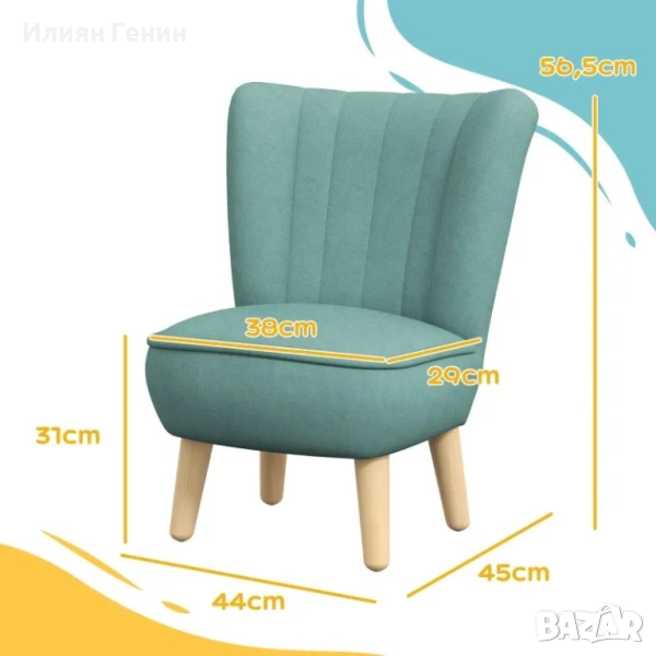 Детско кресло AIYAPLAY, кадифена визия, за 3-7 години, до 45 кг, дървена рамка, 44x45x56.5 см, светлосин - 90.00лв.