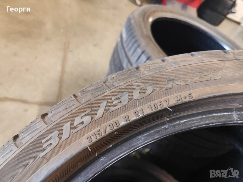 2бр.Pirelli , 315/30/21, ДОТ 3120, 4.5mm грайфер, цената е за 1бр. Гумите са перфектни, без забележки, проверени са на джанта за кривини, балони... !!! Разполагаме с всякакъв размер нова и втора употреба гуми от 14-22 цола за автомобил, джип и бус.