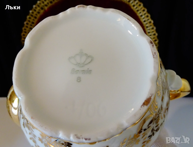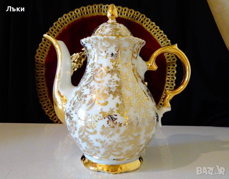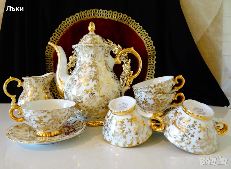 порцелан,ръчно декорирана с цветя и барокови орнаменти от 24 карата