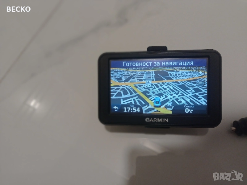 Употребявана навигация Garmin nüvi 40LM в много добро състояние в комплект с оригиналната стойка и зарядно . Автомобилната GPS навигация, предназначена за лесна и интуитивна употреба. Моделът е част от серията Garmin nüvi 40, а буквите LM означават Lifetime Maps — тоест, устройството включва доживотно безплатно обновяване на картите. Технически характеристики: Параметър Описание Екран 4.3-инчов (10.9 см) сензорен дисплей, резолюция 480x272 px Размери 12.6 x 7.8 x 1.8 см Тегло около 148 г Памет Вградена памет (около 2 GB) + microSD слот за допълнителни карти Захранване Литиево-йонна батерия (около 2 часа автономна работа), обикновено се използва с автомобилен адаптер Свързаност mini-USB порт за връзка с компютър Гласова навигация Да, налични различни езици (вкл. български) Картен пакет Обикновено се предлага с карти на Европа; възможно е добавяне на карти за България, Балкани или други региони GPS приемник Високочувствителен GPS с бързо намиране на спътници Функции и възможности: Навигация завой по завой (Turn-by-turn) с гласови инструкции. Lane Assist — показва правилната лента за движение при сложни кръстовища. Speed Limit Display — показва текущото ограничение на скоростта. Where To? (Накъде?) — бърз избор на дестинация по адрес, интересни обекти (POI) и др. View Map (Пок. карта) — визуализация на картата в реално време. Trip Computer — статистика за разстояние, средна скорост, време на пътуване и др. EcoRoute — функция за оптимизация на маршрута с цел пестене на гориво. FM трафик (при някои версии) — показва информация за трафика, ако е наличен съвместим приемник.