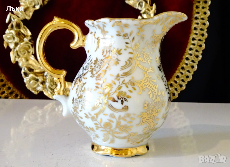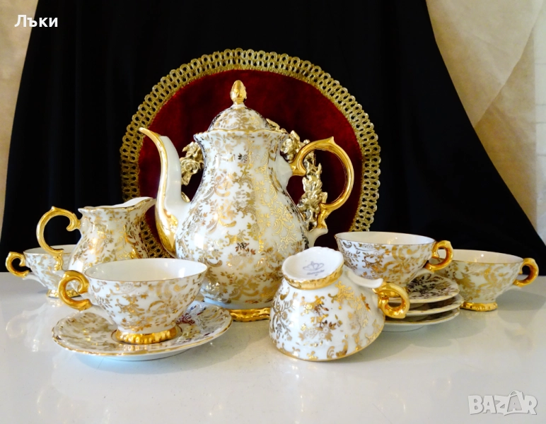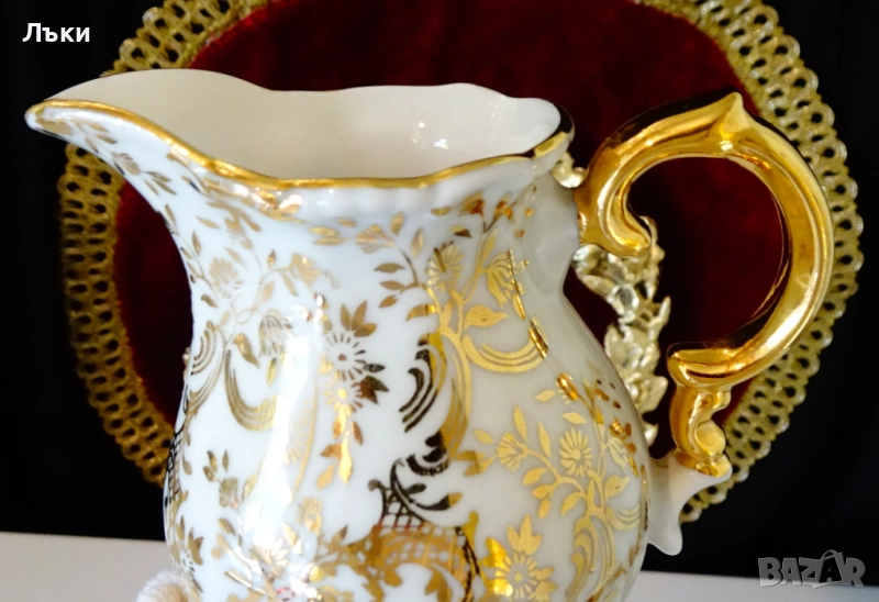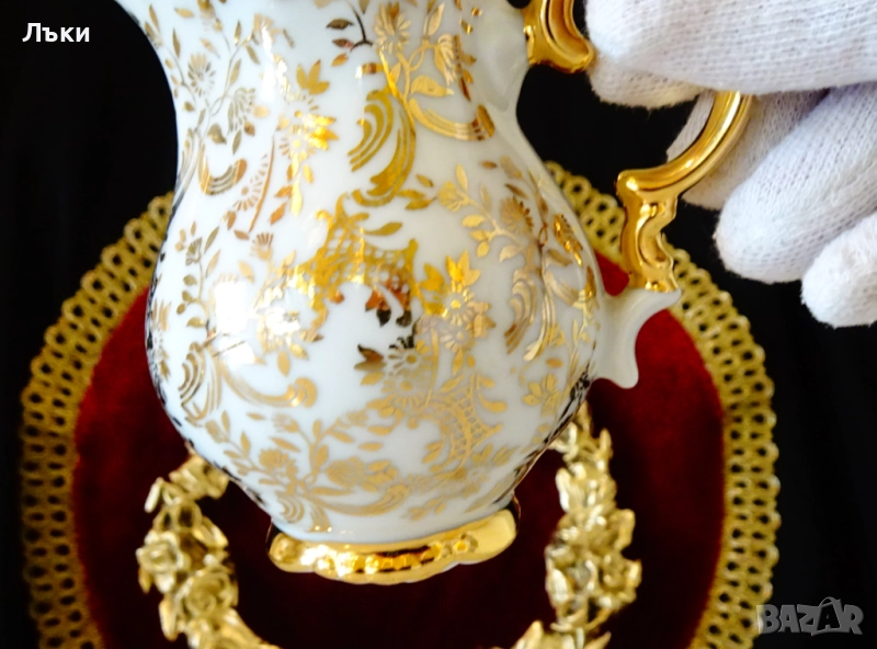 порцелан,ръчно декорирана с цветя и барокови орнаменти от 24 карата