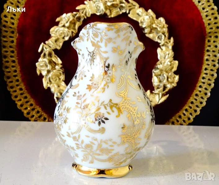 злато.Маркирана с печат на производителя.Изключително качествена и блестяща позлата.Порцелана
