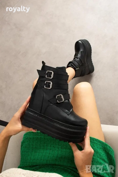 Боти на платформа - черна кожа → Обява 52267475