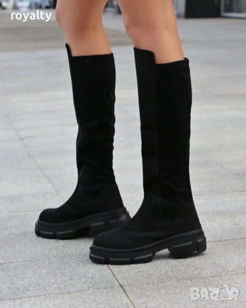 Равни ботуши - черен велур → Обява 52267730