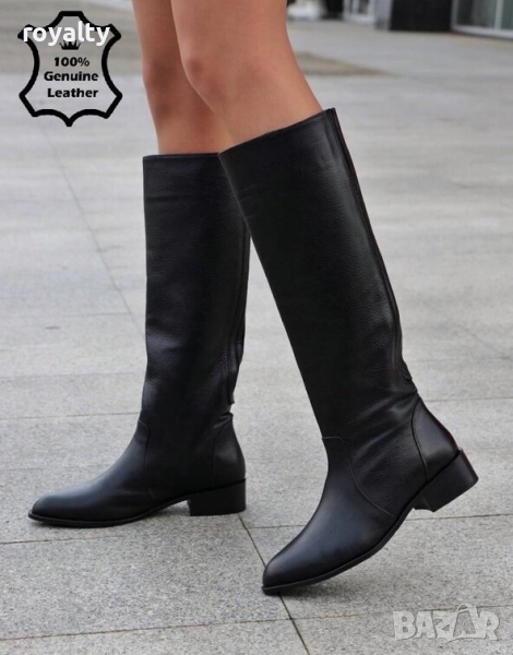 Равни ботуши - черна ЕСТЕСТВЕНА кожа → Обява 52267749