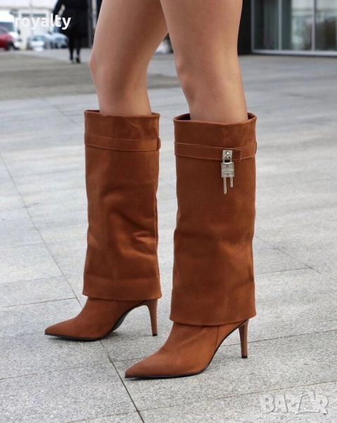 Ботуши на ток - кафяв велур, снимка 1 - Дамски ботуши - 52267766 Ботуши на ток - кафяв велур, снимка 2 - Дамски ботуши - 52267766 1/2