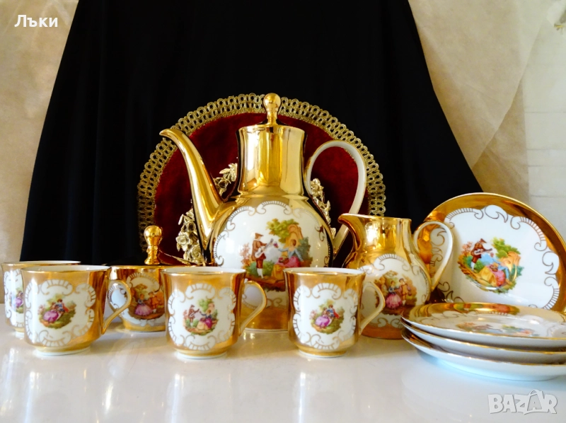кафе,чай,ракия,ликьор,италиански фин порцелан,ръчно декорирани с 24 карата