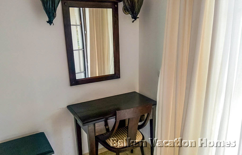Апартаментът е изолиран за целогодишно ползване и има PVC термо дограма, има климатици във всички стаи, а подът е теракота.
