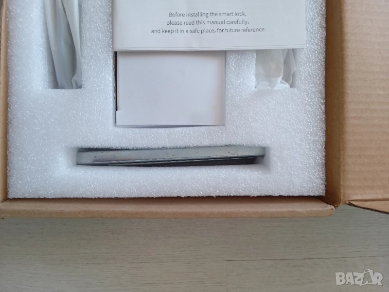 Индикация за батерията: Приложението показва нивото на заряд, а самата брава издава звуков сигнал, когато батериите са почти изтощени. Работи с 4 батерии AA.