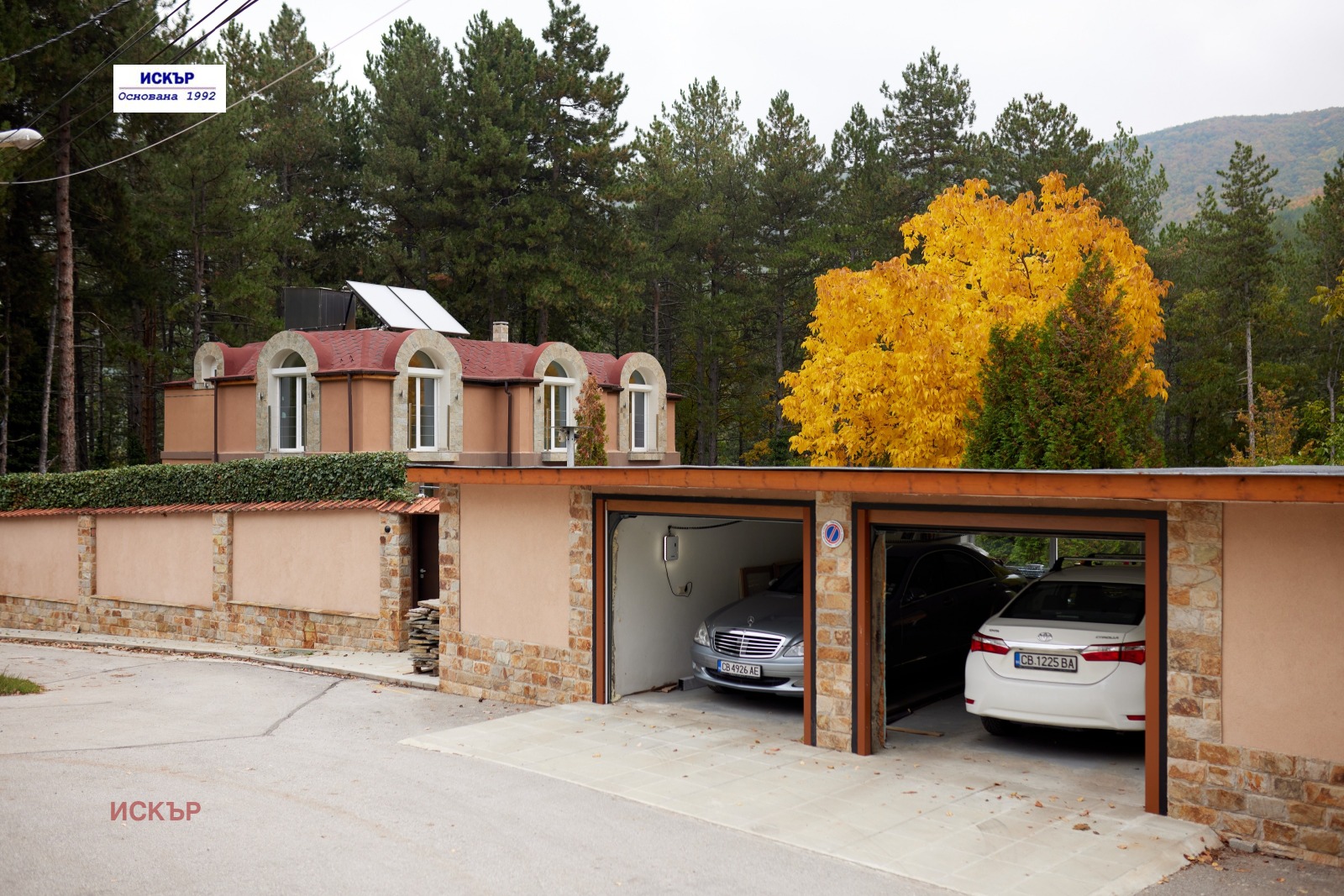 Монолитен гараж за две коли 46 кв.м, с автоматични секционни врати NOVOFERM (управление чрез дистанционно и GSM комуникатор)