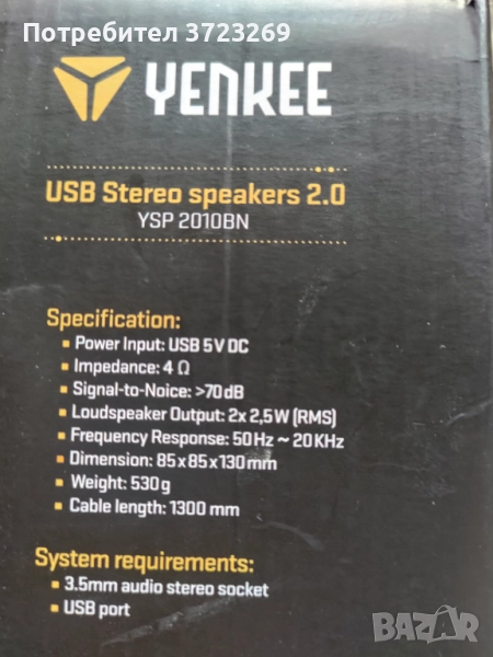 Продавам USB стерео колонки Yenkee YSP 2010BN, чисто нови, неупотребявани, в оригинална опаковка. Компактни, елегантни и удобни за всяко работно място – подходящи за компютър, лаптоп или офис. Колонките осигуряват кристално чист и плътен звук, идеални за музика, филми и игри. Работят чрез USB захранване (5V) и 3.5 мм аудио жак – просто ги включвате и са готови за употреба. Вграден контрол на силата на звука за лесна настройка.