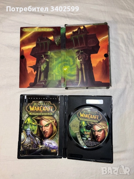 Много добре запазено и рядко оригинално издание на The Burning Crusade от 2007, първия expansion към легендарната игра World of Warcraft от 2004. Expansion-ът (играта) е в отлично състояние и идва в оригиналната си колекционерска разгъваща се картонена кутия, както е показано на снимките. Съдържа оригиналния game manual, както и един класически 10 day guest pass за WoW, който не се намира в бъдещите издания на играта. Играта идва в комплект с ОФИЦИАЛНИЯ Strategy Guide на BradyGames от оригиналния 2007 World of Warcraft Battle Chest. Книгата съдържа 240 страници пълни с leveling guides, crafting tables, outland zone maps и много други видове информация за The Burning Crusade.