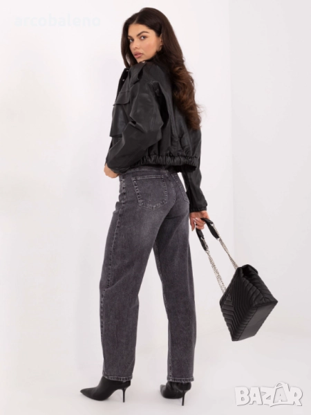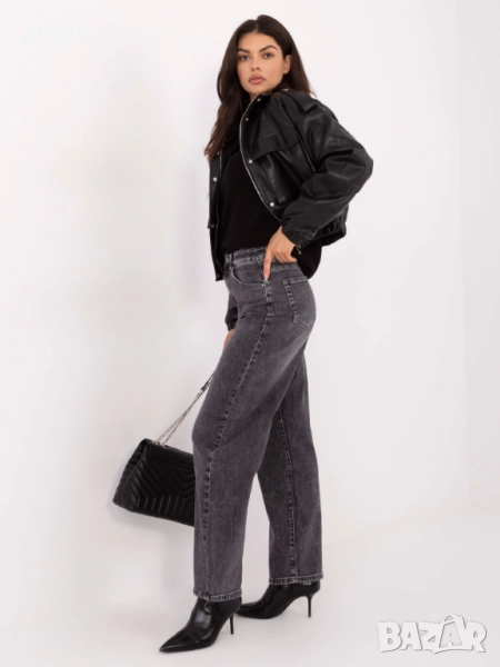 Тъмносиви дамски дънки с висока талия