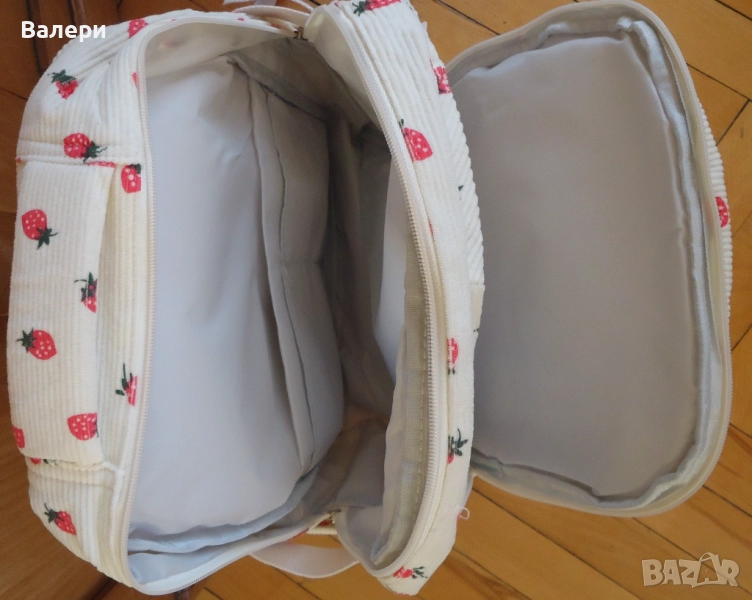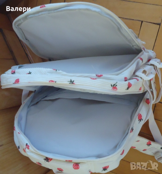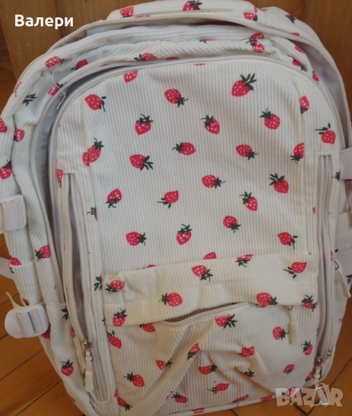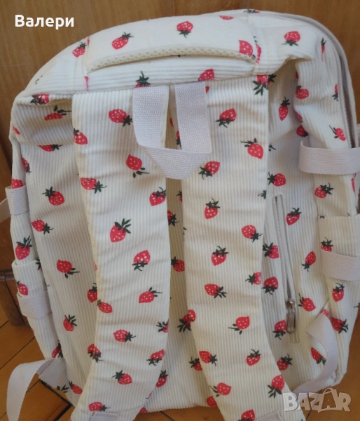 Раница- велурено кадифе, бяла на ягодки → Обява 52270172