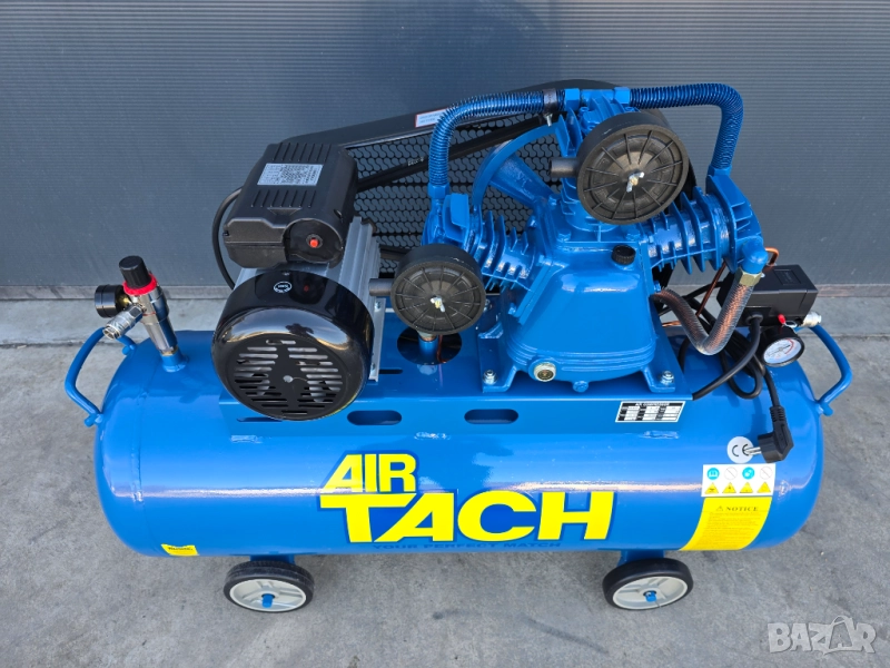 Предлагаме на Вашето внимание компресор за въздух тип „TACH“ с обем на съда 120 литра, три глави и мощност от 4.0 Нр - 3,0 kW - лимитирана версия с подобрена работа на електромотора и нов модел персостат. Без аналог на пазара. С колела и удобни дръжки за лесно транспортиране. Компресорът е създаден да генерира и съхранява въздух под налягане за инструменти работещи с въздух. Предназначен за всякакъв вид работа.
