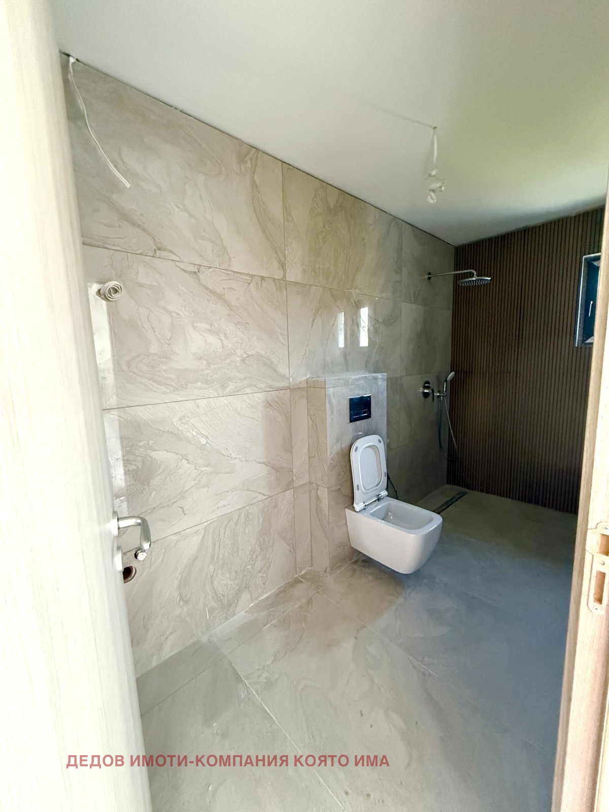 Втори етаж: Две спални и просторен дрешник, който може да бъде използван и като офис или детска стая в близост до родителската спалня. Голямата баня с тоалетна е почти завършена, с минимални довършителни дейности.